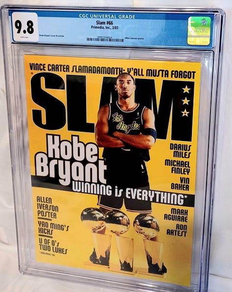 Unfortunately, despite the slab label indicating it’s an original, the issue was printed in 2021 and sold as a collector’s item in the wake of Kobe’s death the year prior.