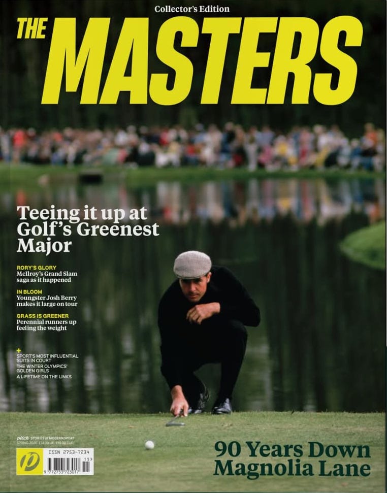 A great cover, sure, but with no green and no Augusta National identifiers, it doesn’t exactly scream “Masters”.