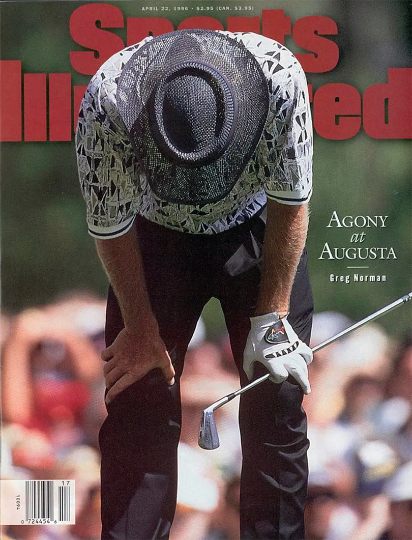 The Shark is lucky his all-time collapse didn’t happen in the social media era, where his six-stroke 54-hole blown lead would have been memed into Bolivian like the 2016 Warriors. This cover, with its simple headline and relatable body language, is immediately recognizable, unfortnately for Norman.