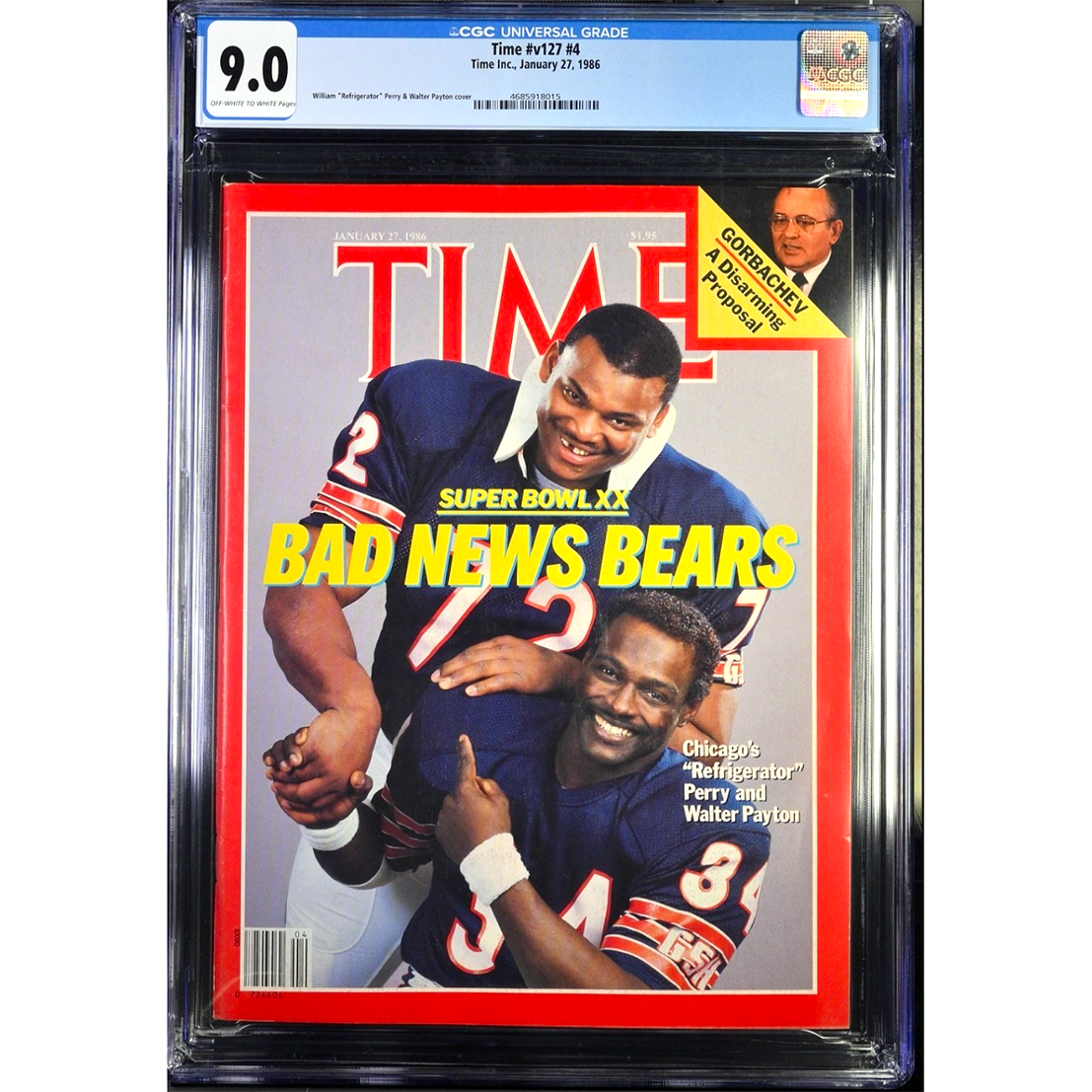Ends Sun. 4/12 at 9:25pm ET: CGC 9.0 TIME Jan. 27, 1986 Walter Peyton and William “Refrigerator” Perry 1st covers
