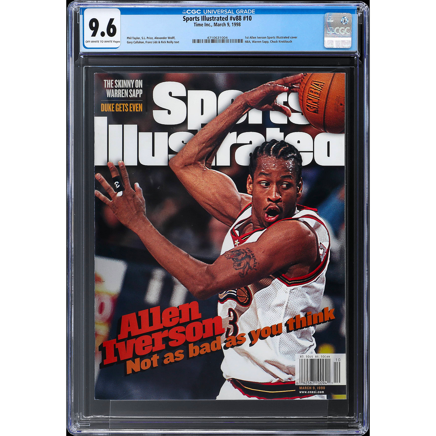 CGC 9.6 Sports Illustrated Mar. 9, 1998 Allen Iverson 1st cover *Top Pop*