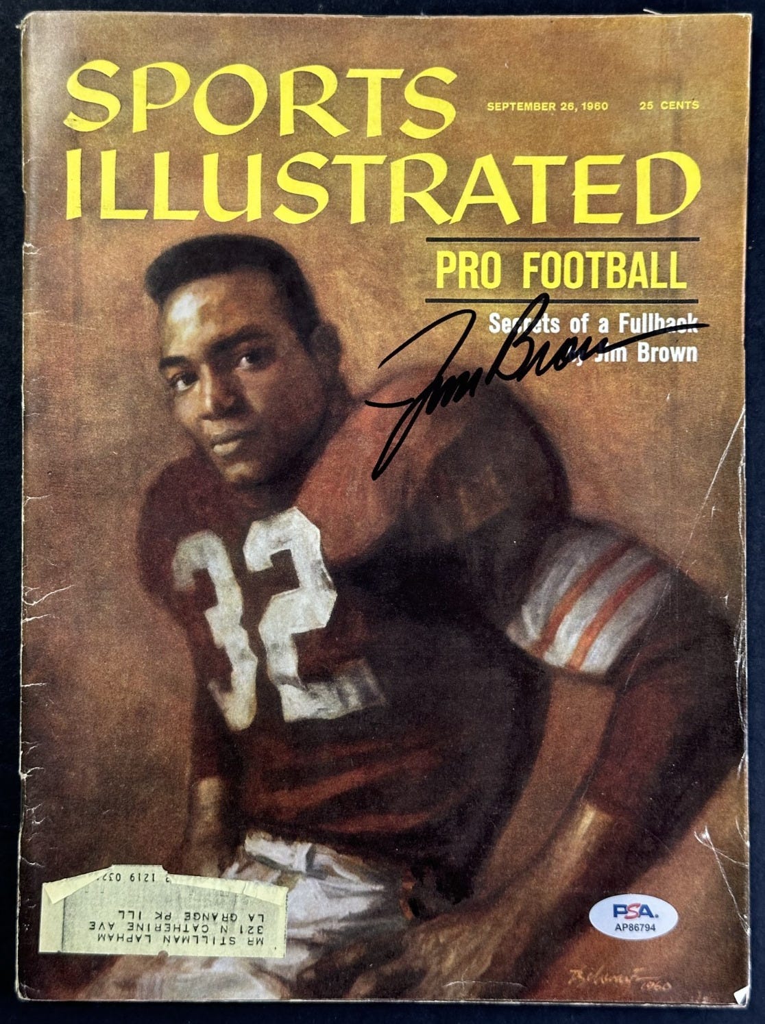 🏈 A rare autographed copy of Jim Brown’s first Sports Illustrated cover is up for auction on eBay. A graded newsstand copy sold for $885 last year, so perhaps this ungraded subscription copy (with a few major creases) can be had for significantly less.